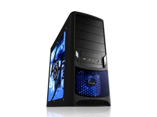 Stylish side panel; Front mounted USB 2.0, and audio ports easy accessibility to your devices 80mm front panel LED fan cools your hard drives; Blue LED power status Huge 120mm rear exhaust fan circulates hot air throughout your chassis Large interior for motherboards up to 10? x 12? and open working space Case Type: ATX Mid Tower Gaming Case; Color: Blue; Material: SECC Steel; M/B Type: ATX(12" x 10.5"), or smaller; Drive Bays: 10; External Bay: 4x 5.25", 1x 3.5"; Internal Bay: 5x 3.5"; Expansion Slots: 7