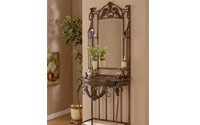 This is an elegant Victorian iron sink with antique brass finishes. Matching hutch has graceful genuine metal scroll. Comes complete with brass sink and a large mirror.